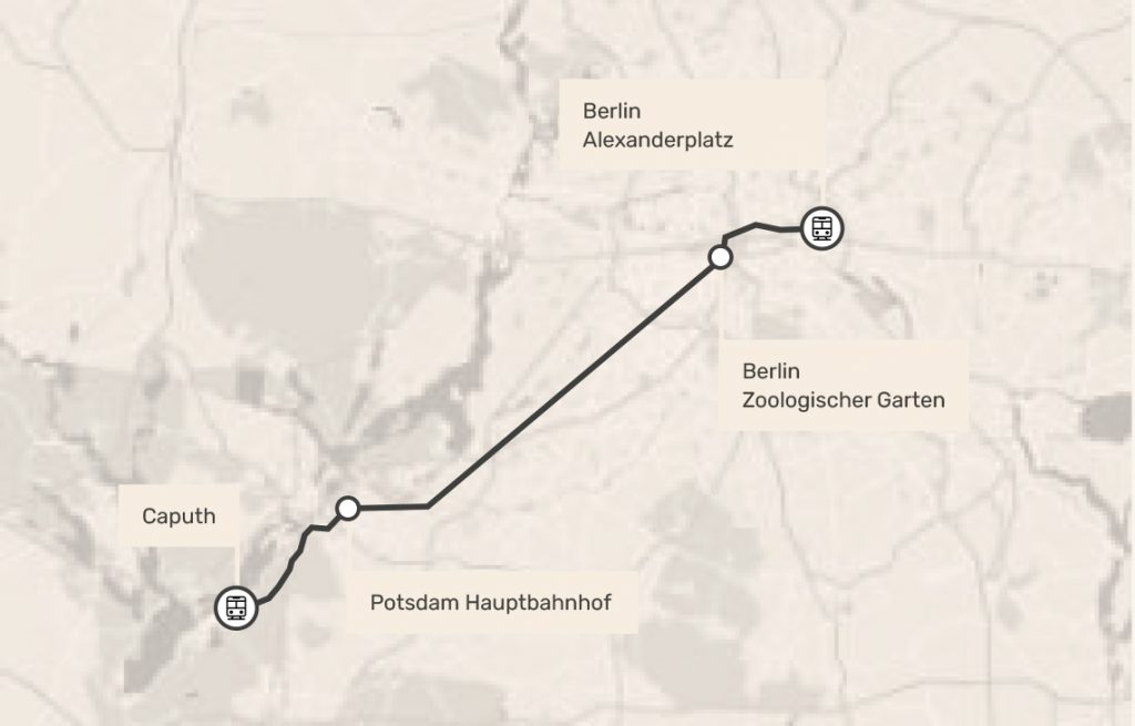 Die direkte Busverbindung bringt Sie in 15 Minuten vom Blütenviertel zum Hauptbahnhof in Potsdam. Dank Regionalbahnanschluss im Ort sind Sie ab Potsdam in 20 Minuten am Zoologischen Garten in Berlin und in 33 Minuten am Alexanderplatz in Berlin Mitte.